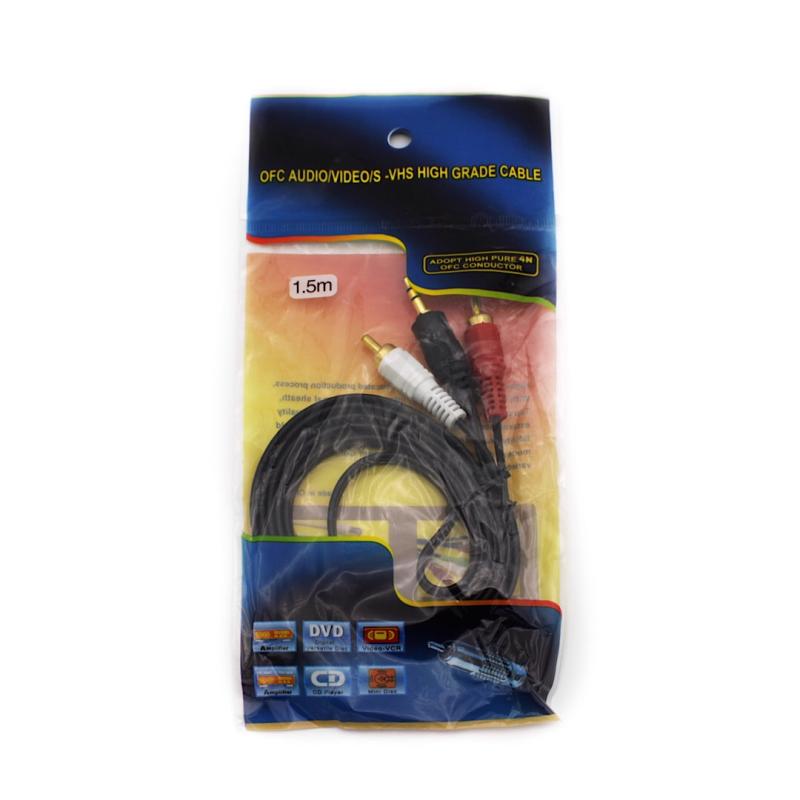 Аудіо відео кабель AV 3.5 Jack (тюльпан 2), 1.5 m — це ваш вибір для стабільного та якісного з'єднання! Оптом.