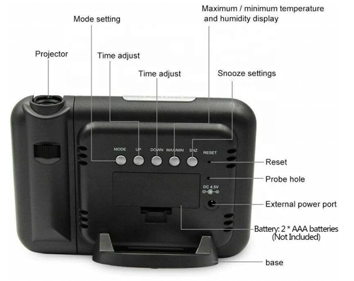 Проекційні годинники DS-8190 мають безліч функцій, які зроблять ваше життя більш зручним. Модель включає в себе будильник, календар та метеостанцію, здатну миттєво вимірювати вологість і температуру в приміщенні. Крім того, унікальна функція проекції часу дозволяє відображати поточні години на стінах або стелі червоним кольором, що додає оригінальності та зручності в використанні.