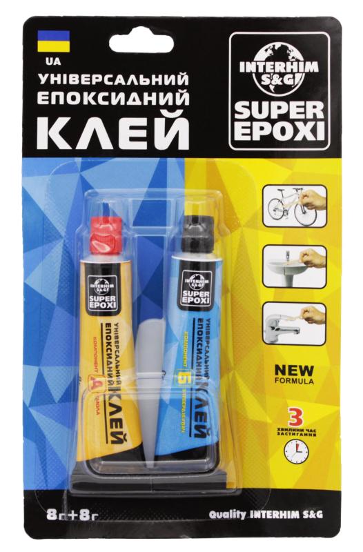 Епоксидний клей SUPER EPOXI 2x8г. / Interhim S&G - універсальний, професійний, супер міцний