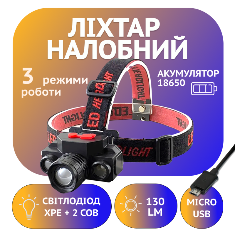 Налобний ліхтар BL-1805 / Акк.18650/ 8016/ microusb — ідеальний помічник у темряві