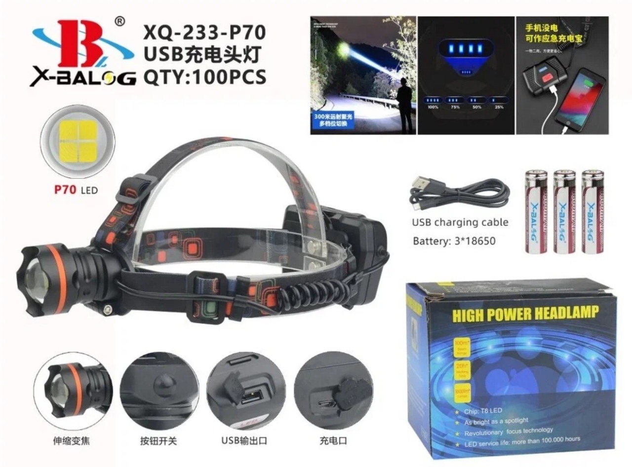 Налобний фонар Police PL-154, P50, 3*18650 акум, Type-C - ідеальний інструмент для освітлення