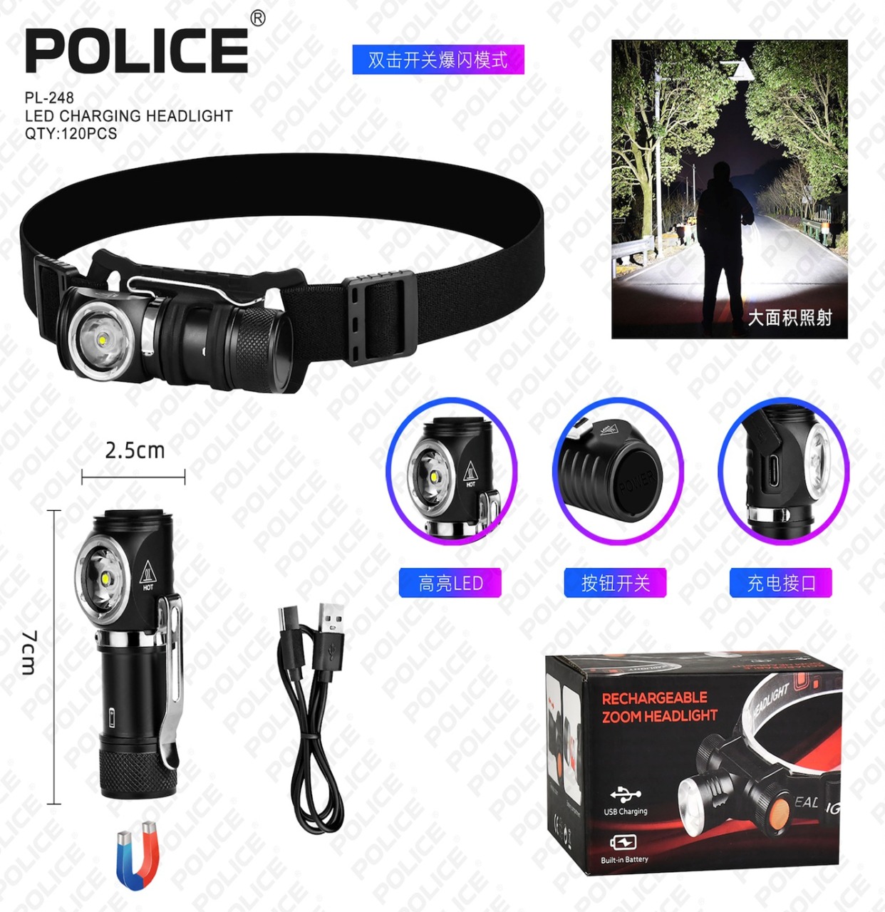 Police PL-248: Налобний ліхтар з магнітом та акумулятором