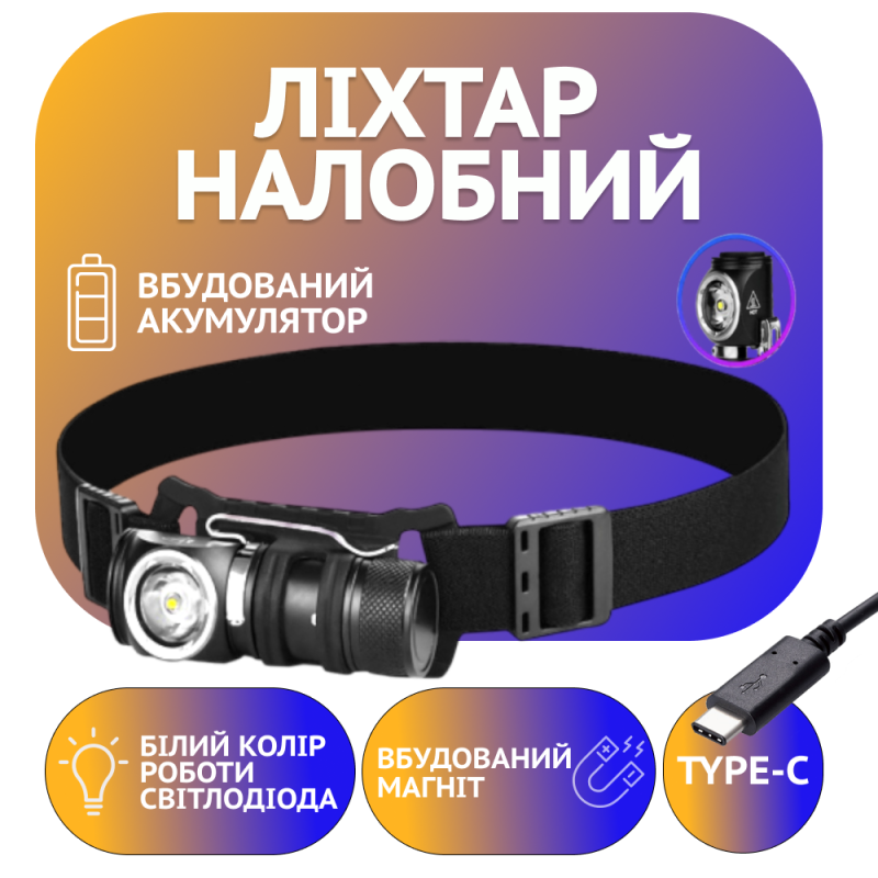 Налобний ліхтар Police PL-248, магніт, акум, Type-C: надійність та зручність в одному пристрої