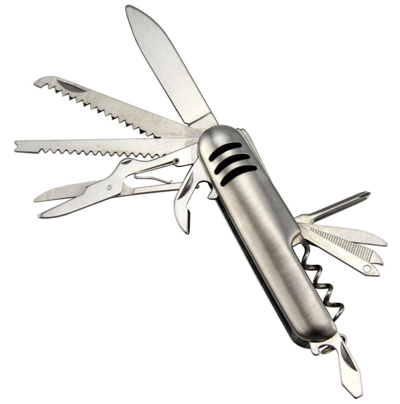 - Інструменти в комплекті: ніж, ножиці, викрутка, відкривачка, пила