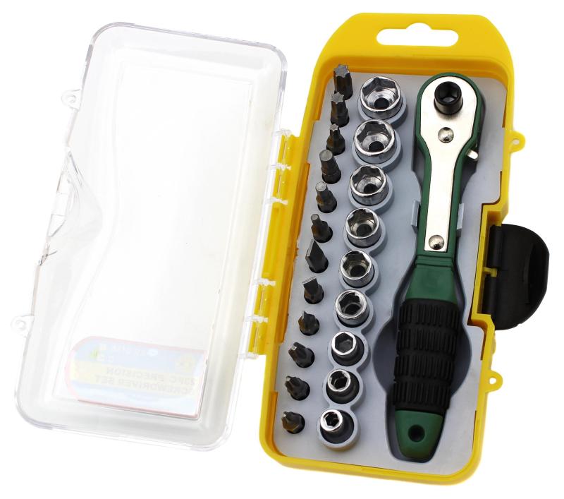 Набір трещітка YXB XS-18B — це надійне та універсальне рішення для виконання різних завдань вдома та на професійних об'єктах. Оснащений 23 головками та бітами, цей набір відповідає всім вимогам сучасних користувачів і забезпечує комфорт у роботі.
