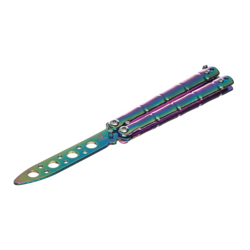 Ніж метелик маленький Тренувальний Mini A975 підходить для тих, хто хоче почати своє захоплення фліпінгом без ризику порізів. Його довжина 16,5 см та лезо 7 см забезпечують зручність під час тренування різних трюків і маневрів. Градієнтний колір надає ножу стильного та сучасного вигляду, що робить його не лише функціональним, але й естетично привабливим.