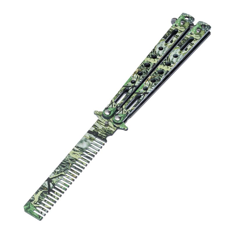 Ніж метелик Гребінець A1057 — це унікальний інструмент, який комбінує функції ножа-метелика та стильного гребінця. Ідеальне рішення для тих, хто цінує оригінальність і зручність у повсякденному житті, а також прагне виділитися з натовпу завдяки креативним аксесуарам.