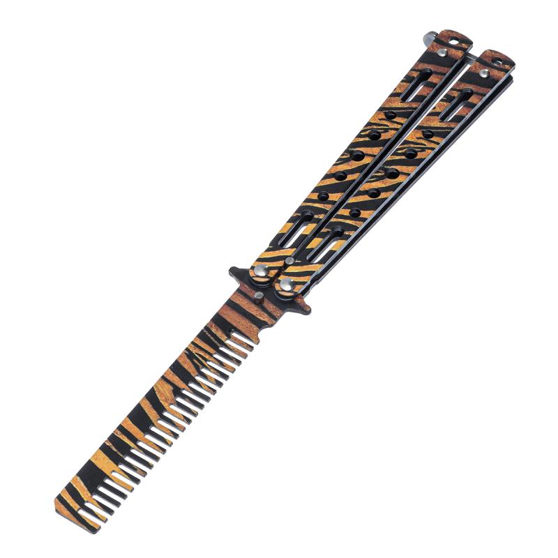 Ніж метелик Гребінець A1061 представляє собою оригінальний аксесуар, який поєднує в собі функціонал як ножа, так і гребінця. Цей унікальний інструмент не тільки допоможе вам укладати волосся, але й продемонструє ваші навички у сфері фокусів і трюків, додаючи особливу родзинку в повсякденність.