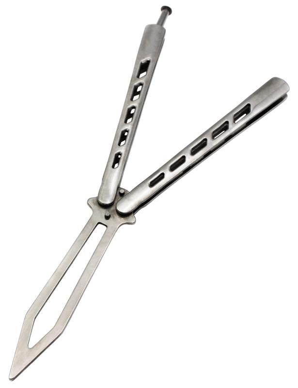 Ніж метелик Тренувальний Metalic AK13 створений для тих, хто хоче навчитися акробатиці та трюкам з ножем, не ризикуючи пошкодити себе. Його довжина в 24.5 см дозволяє зручно тримати ніж у руці, а клинок довжиною 10 см ідеально підходить для виконання різних маневрів. Сріблястий колір надає ножу сучасного стилю, а завдяки якісним матеріалам, ніж легко чиститься і зберігає свій первісний вигляд навіть після тривалого використання.