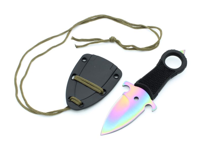 Рукоять довжиною 6 см зручно лежить в руці, що дозволяє впевнено контролювати ніж в будь-яких умовах. Завдяки градієнтному кольору та чорному відтінку, він виглядає естетично та стильно. У комплект входять ножни, які забезпечують безпечне зберігання та транспортування ножа, що особливо важливо для мисливців та туристів.