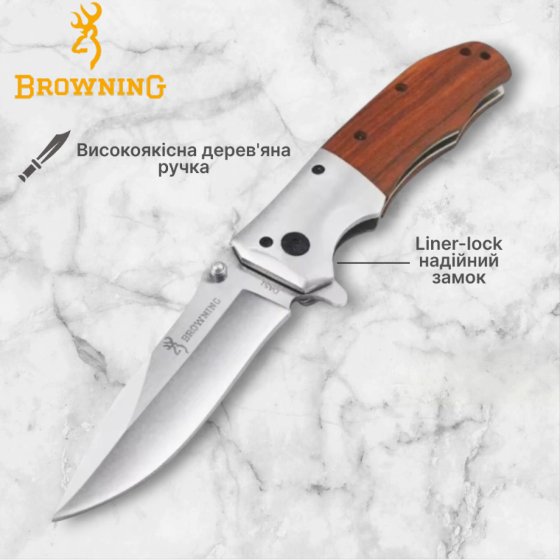 Якість матеріалів — це важлива перевага Browning DA51. Нержавіюча сталь марки 440C з твердості 56 HRC гарантує довговічність, а рукоять, виконана з поєднання металу та дерева, надає ножу стильний зовнішній вигляд і забезпечує надійний захват. Зручна система assisted opener дозволяє відкрити ніж однією рукою, що робить його використання швидким і простим, особливо в ситуаціях, коли кожна секунда на рахунку.