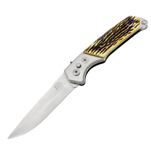 Головна особливість ножа 333B — це надійний механізм замка Button-Lock, який забезпечує безпеку під час використання та запобігає випадковому розкриттю. Міцна масивна ручка забезпечує комфортний хват і стійкість при роботі, а стильний колір слонової кістки привертає увагу і підкреслює індивідуальність власника.