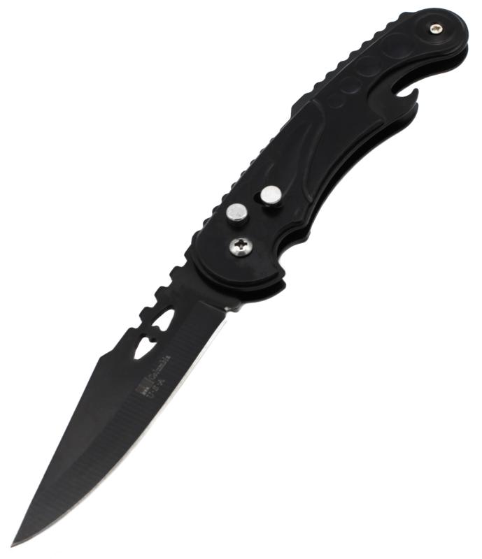 Ніж викидний Opener A389 створений для тих, хто цінує якість та зручність. Його елегантний чорний колір і сучасний дизайн роблять його не тільки практичним інструментом, але й стильним аксесуаром. З загальною довжиною 21 см і довжиною леза 9 см, цей ніж чудово сидить у руці, забезпечуючи комфортне використання.