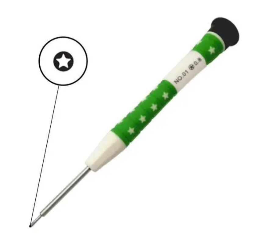 Викрутка YAXUN YX NO-01 0.8 зірочка має розмір 0.8 мм, що робить її ідеальною для роботи з дрібними гвинтами, які використовуються в мобільних телефонах, ноутбуках та іншій електроніці. Виготовлена з високоякісної сталі, ця викрутка забезпечує довговічність та стійкість до зносу. Ергономічна рукоятка з протиковзким покриттям гарантує комфортне використання, дозволяючи працювати довгий час без втоми.