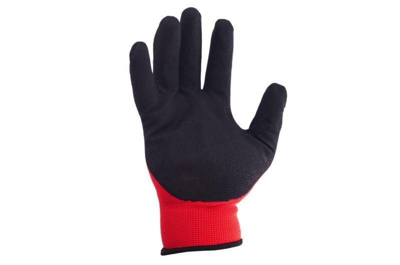 Робочі рукавички стретчеві нейлонові з ПВХ покриттям Розмір - 10 (чорно-червоні) в упаковці 12 пар оптом