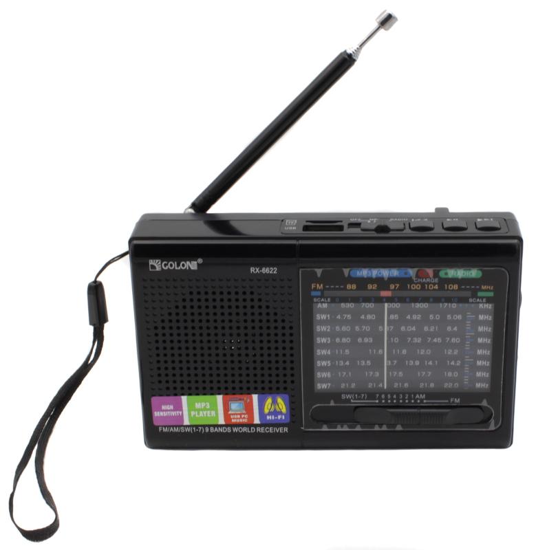 Радіоприймач Golon RX-6622 — це універсальний пристрій, яке поєднує в собі функції традиційного радіоприймача та сучасні технології, такі як USB та SD програвач. Компактний і портативний, він ідеально підходить як для використання вдома, так і на природі.