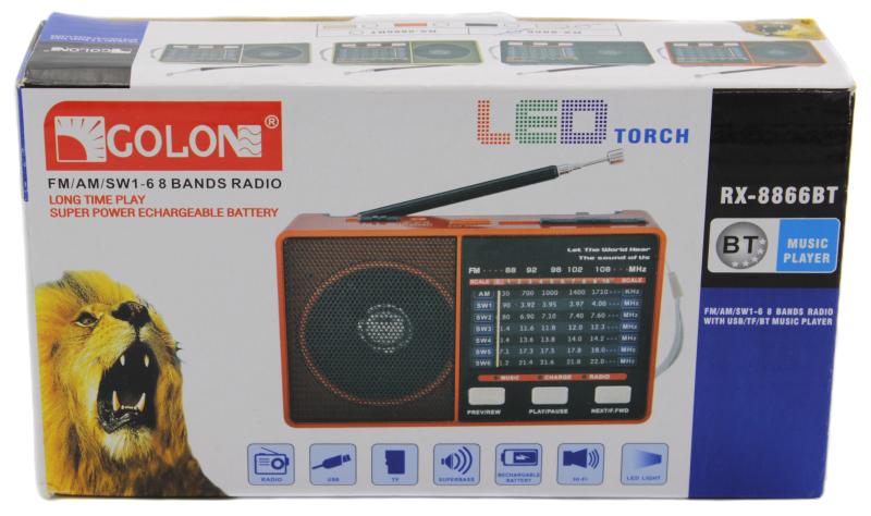 Ця модель радіоприймача Golon RX-8866 підтримує відтворення хвиль AM, FM, TV, а також діапазони SW1 і SW2, що дозволяє насолоджуватися різноманітними радіостанціями і програмами. Завдяки підтримці USB, SD-карт і AUX-підключення, ви можете використовувати його як програвач для вашої музики, що додає додаткову функціональність і робить його ще більш практичним.