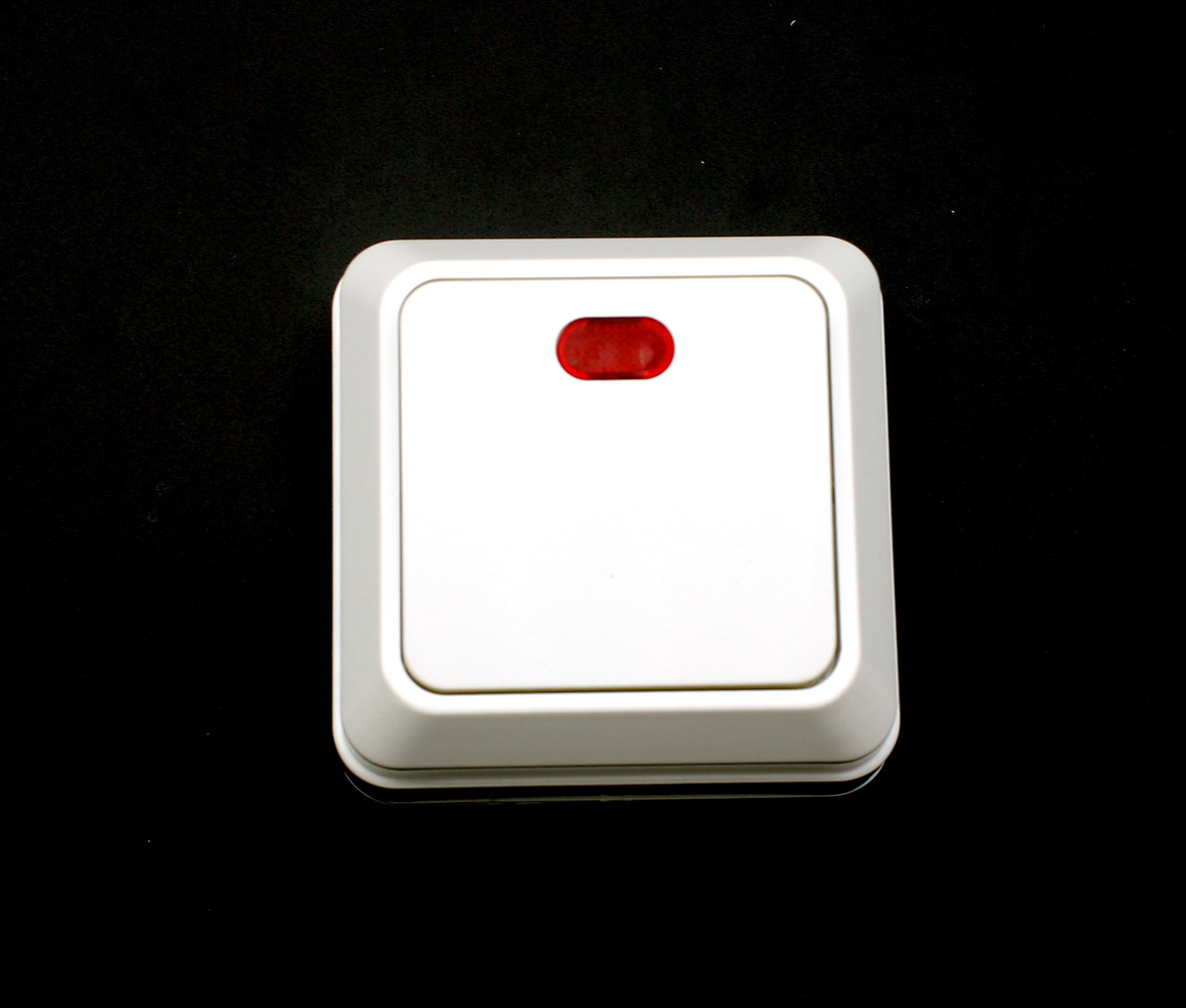 Вимикач накладного у білому кольорі. Є підсвічування на кнопці, що зручно для використання. Міцний пластик у виробі. Товар відпускається оптом.