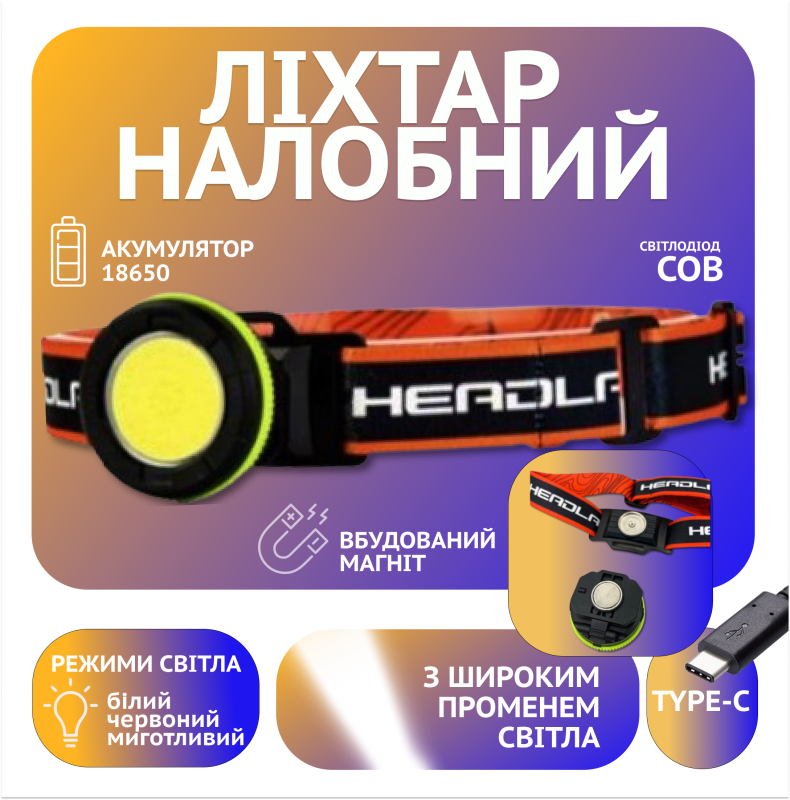 Фонарь налобный PL-139, COB, (Красный+Белый) Li-on 18650, ЗУ Type-C — ваш незаменимый помощник в темноте