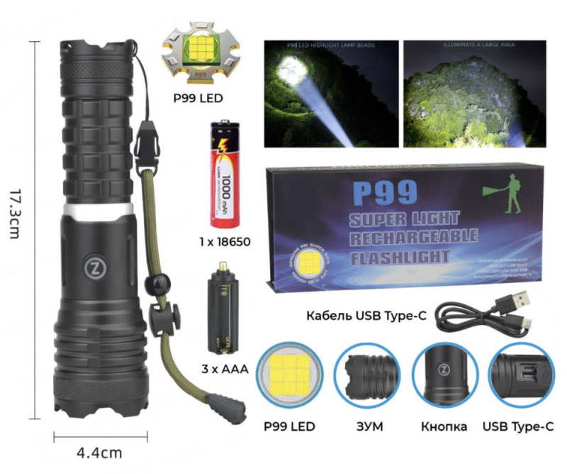 Одной из самых удобных особенностей этого фонаря является поддержка зарядки через USB Type-C. Это значительно упрощает процесс зарядки и делает его более универсальным — вы сможете заряжать фонарь от любого совместимого источника. Благодаря этому, фонарь Rablex RB267 станет отличным выбором для любителей выездов на природу, кемпинга и просто для использования в быту.