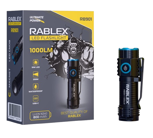 Фонарь ручной Rablex RB901, Li-ion 16340, Zoom, ЗУ Type-C – это ваше надежное решение для любых активностей, которые требуют качественного освещения. Закажите прямо сейчас и убедитесь в его преимуществах сами. Оптом.