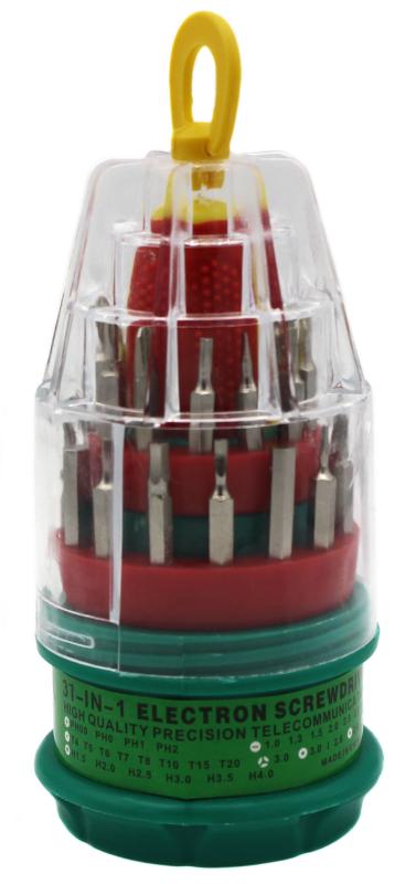 Отвертка - это такой инструмент, который должен быть на хозяйстве в каждом доме. Без нее невозможно починить практически любую вещь и пользоваться ею умеют как мужчины, так и женщины, а для мастера такой инструмент - просто незаменимая вещь. Отвертка с битами Screwdriver 31in1- это универсальная отвертка с магнитным наконечником и набор шестигранников, звездочек и многих других наиболее распространенных насадок для отвертки - нет необходимости покупать целый дорогой набор отверток, который занимает много места. Универсальный набор отвёрток 31в1 - это замечательный инструмент состоящий из 32 предметов, подходящий как профессионалу, так и любителю. Такой набор отлично подойдет для разборки и сборки телефона, стационарного компьютера, планшета, ноутбука и другой техники. В наборе присутствует, ручка с намагниченным наконечником и 30 насадок, которые помогут вам в решений множества задач. В состав набора входят такие насадки: - шлицевой (плоская) 1.**********.0; 4.0 - Torx T3 T4; T5; T6; T7; T8; T10; T15 - филипс (крестовая) 1.0; 1.5; 2.5 3.0 - Hex H1.5; H2.0; H2.5; H3.0; H3.5; H4.0 - треугольник 3,0 - ключ глава 2,6 - Try-Wings 3.0 - пять звёзд 2,0 Все предметы хранятся в боксе, где каждая насадка имеет отдельное гнездо для хранения. Высококачественный универсальный набор отвёрток 31в1, будет незаменимым помощником для вас в быту, а также практичным подарком вашем друзьям и близким. Комплектация: - отвертка с магнитом (1шт.) - набор бит (30шт.) - футляр (1шт.) - инструкция.