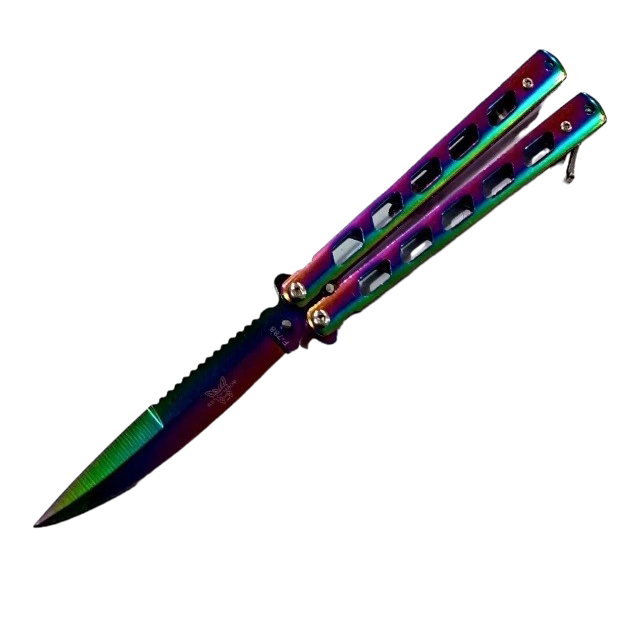 Нож бабочка A1011 Gradient — это стильный и функциональный инструмент с уникальным градиентным дизайном, который подходит как для коллекционирования, так и для практического использования. Его элегантный внешний вид и продуманные характеристики делают его идеальным выбором для любителей ножей и профессионалов.