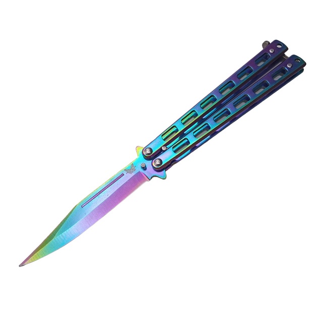 Нож бабочка Gradient, 4722X – это идеальное сочетание элегантного дизайна и высокой функциональности. Изготовленный из закаленной нержавеющей стали с уникальным радужным покрытием, этот нож станет не только полезным инструментом, но и стильным аксессуаром для коллекционеров и любителей активного отдыха.