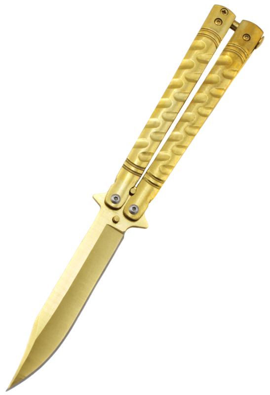 Нож бабочка XIN XU A31 — это стильный и высококачественный инструмент длиной 21 см, который не только впечатляет своим дизайном, но и подарит вам уникальные ощущения при использовании. Золотистый цвет придаёт ему особый шарм, а удобный механизм открывания делает его незаменимым в любой ситуации.
