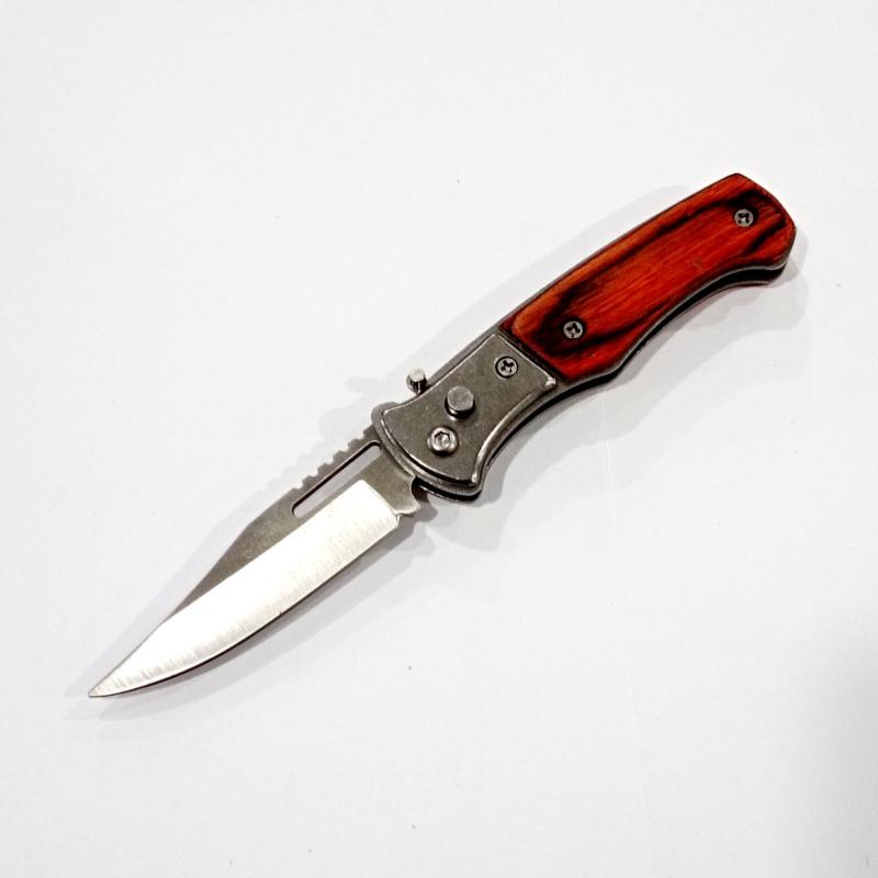 Рукоять ножа выполнена из тёмного дерева, что придает ему стильный и качественный вид. Она удобна для хвата и не скользит в руках, что особенно важно в условиях ограниченного пространства или в экстренных ситуациях. Тип замка Button-Lock обеспечивает надежную фиксацию лезвия в открытом положении, что исключает вероятность случайного закрытия ножа во время работы. Таким образом, вы можете быть уверены в своей безопасности и уверенности в каждом движении.