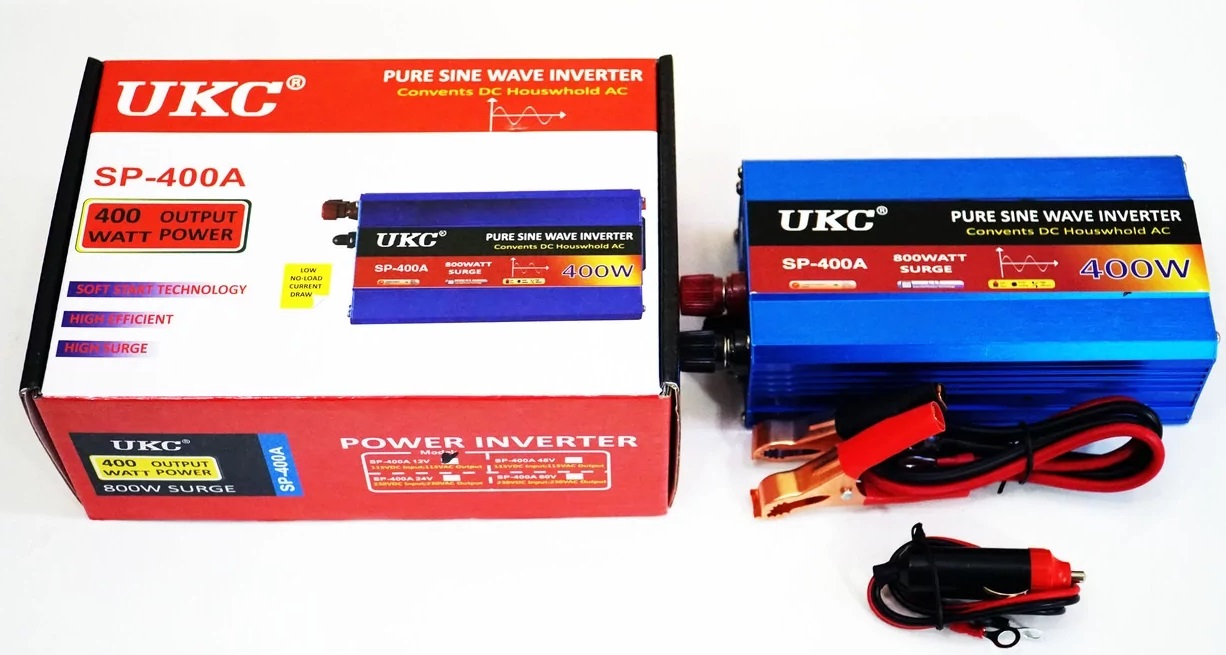 Инвертор преобразователь UKC 12-220V 400W — это надежное устройство, предназначенное для преобразования постоянного напряжения 12 В в переменное напряжение 220 В с чистой синусоидальной волной. Этот инвертор идеально подходит для использования в автомобиле, на даче или в условиях автономного электроснабжения, обеспечивая стабильную работу вашего оборудования и электроники.
