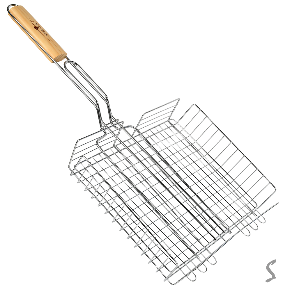 Эта решетка-гриль отлично подходит для использования на даче, во время выездов на природу или даже на балконе. Благодаря компактным размерам её удобно хранить и транспортировать. Удобные ручки позволяют легко перемещать решетку даже когда она горячая, что добавляет удобства в процессе готовки. Решетка совместима с большинством грилей и мангалов, что делает её универсальным инструментом для любого любителя барбекю.