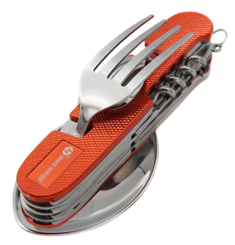 Туристический столовый прибор Оранжевый A295 большой – это идеальный спутник для любителей активного отдыха и путешествий. Скомбинировав в себе функции вилки, ложки, ножа и открывалки, он обеспечивает максимальное удобство и практичность при использовании на природе или в походах.