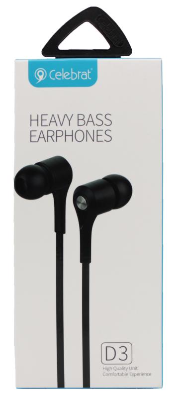 Вакуумные наушники-гарнитура Celebrat D3 с микрофоном, цвета: Черный, Золото, Серебро Оптом